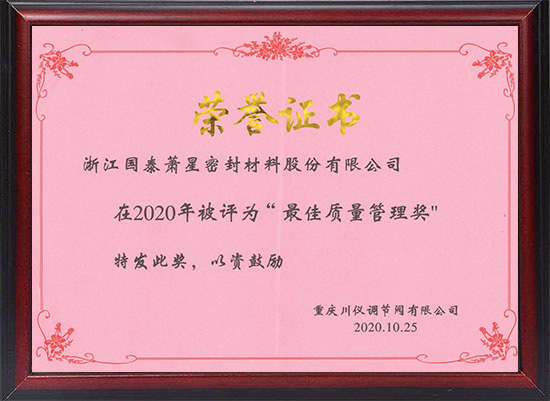 重庆川仪最佳质量奖