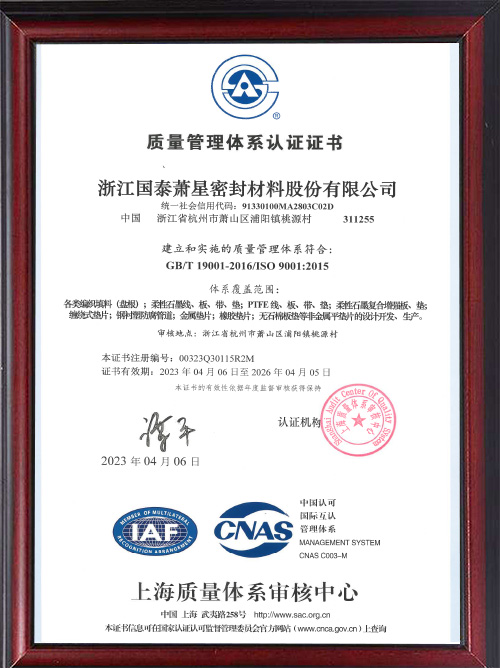 质量管理体系认证证书