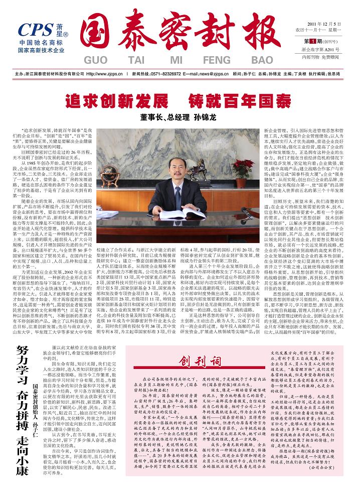 经过近一个月时间紧锣密鼓的筹备,公司企业报《betway西汉姆联官方网站密封报》创刊号于2011年12月6日正式出版发行。